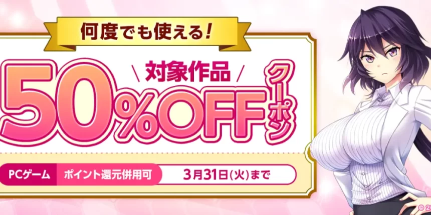 3月もアダルトPCゲームをたっぷり楽しもう! 対象作品が50%OFFになるクーポンは何度でも使えま…