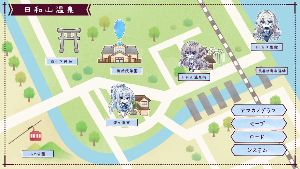 なお、マップ画面で優柔不断に振る舞う(一度のプレイで複数のヒロインアイコンを選択する)と、5人のヒロインの誰とも付き合えないエンディングを迎えてしまう。本作を隅々まで味わい尽くすという意味では1回は見ておいてもいい結末ではあるが、効率よくゲームを進めていくためにも、最初にマップ画面が表示された時点でセーブデータを作成。ヒロイン全員の個別ルートへスムーズに移れる環境を作っておくのが、無難といえるだろう。