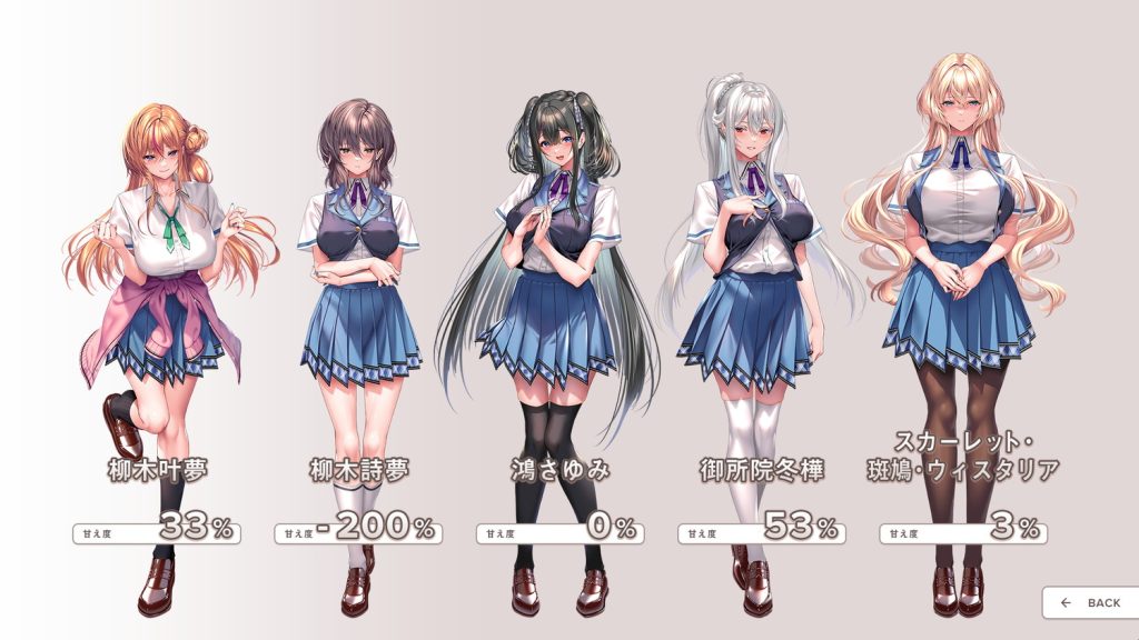 さらに本作では、ヒロインたちの心情の変化を「甘え度」としてシステム化。甘え度はメニューバーの「アマカノグラフ」をクリックするといつでも確認でき、甘え度に合わせたボイスも視聴できるようになっている。