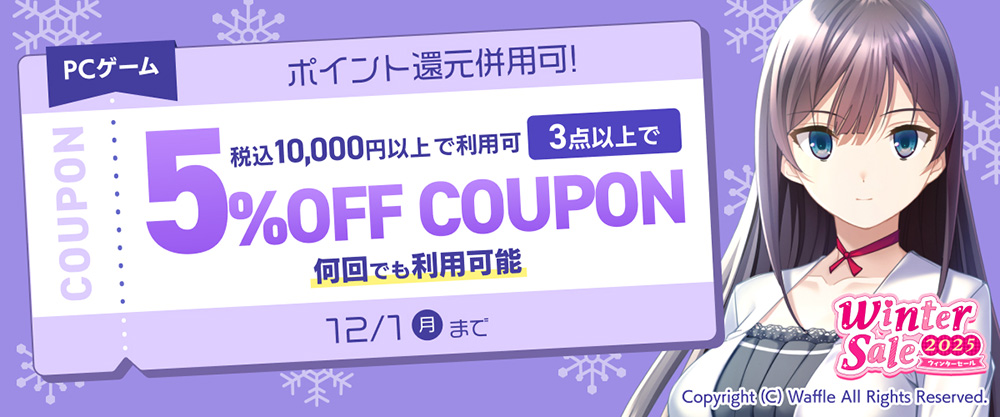 株式会社デジタルコマース(東京都港区、代表取締役社長 島崎 啓之)が展開するFANZA GAMES(https://dlsoft.dmm.co.jp/)は、本日2025年11月27日(木)10:00より、「ウィンターセール2025」を開催いたします。