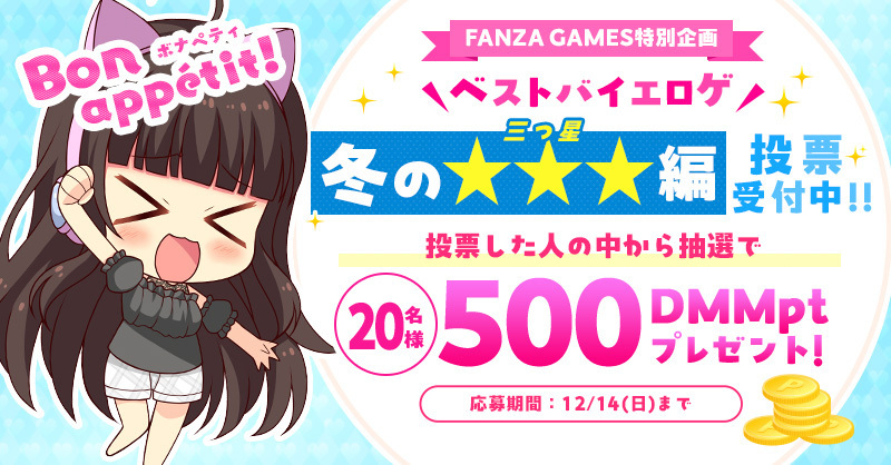 投票特典:投票いただいた人の中から抽選で20名様にDMMポイント500ポイントをプレゼント