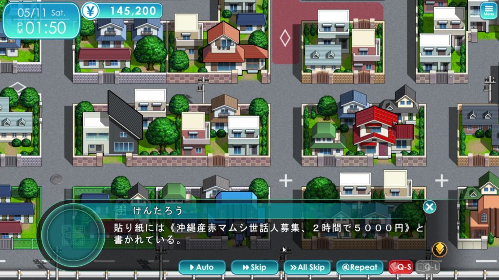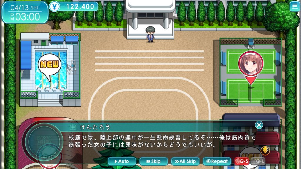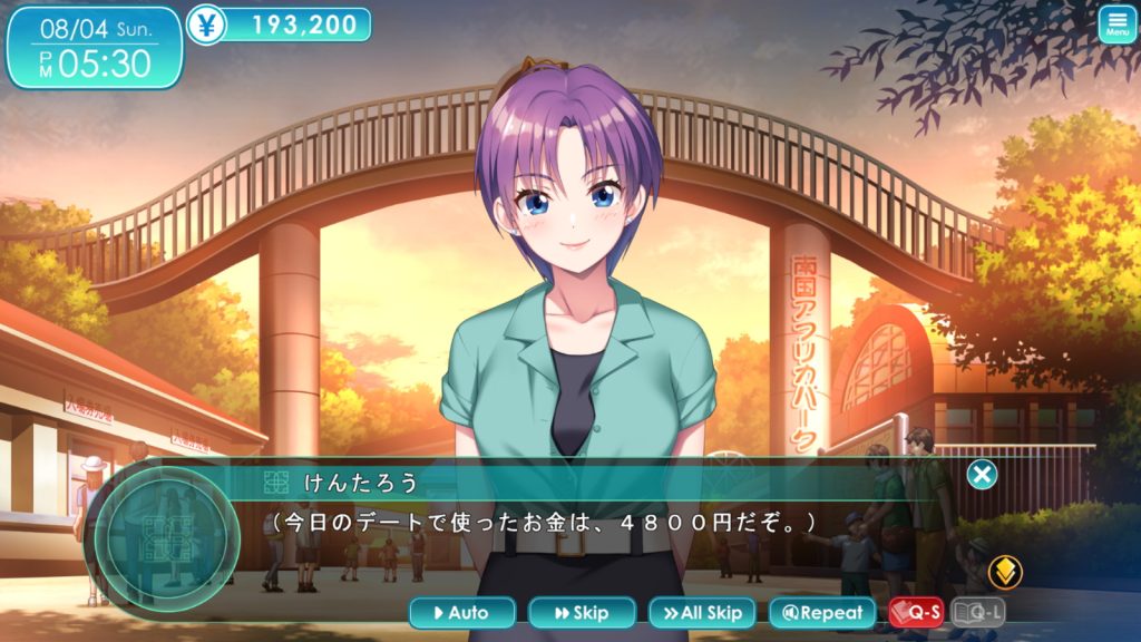 ▲オリジナル版とほぼ同じ仕様で遊べるヒントモードOFFは、本作においてはベリーハードモードという位置づけといえる。ADVパートで狙ったヒロインを見つけだして会話するのが難しいうえ、バイトでデート時に使うお金を確保する必要がある