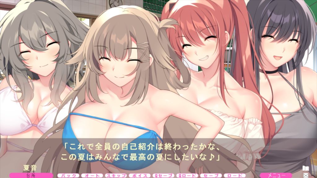 『エンジョイサマー マキシマム』はそのタイトル名のとおり、真夏が舞台のADVだ。プレイヤーは商店街の福引で無人島リゾートの旅を当てた主人公、杉本良一として夏を謳歌。さまざまな偶然が重なって民宿に集まった4人のお姉さんヒロインとエッチメインのコミュニケーションを重ねていくことになる。