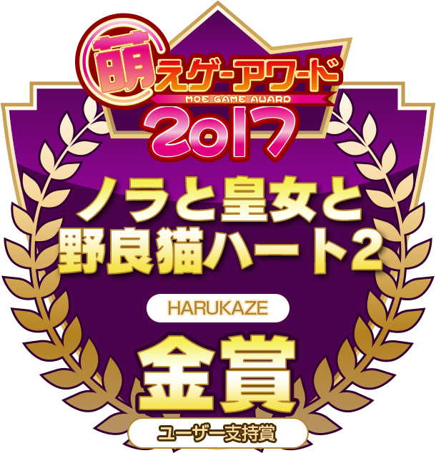昨年の萌えゲーアワードでは前作『ノラと皇女と野良猫ハート』は17位でしたが、『ノラと皇女と野良猫ハート2』は様々な場面で前作より多くの応援や反響をいただいており、本年度はついに1位をいただくこととなりました。